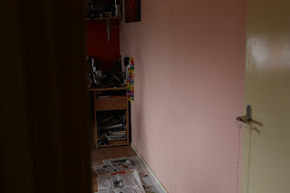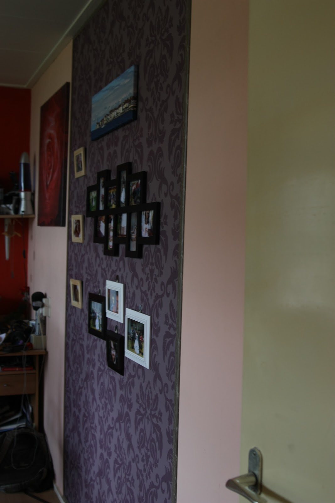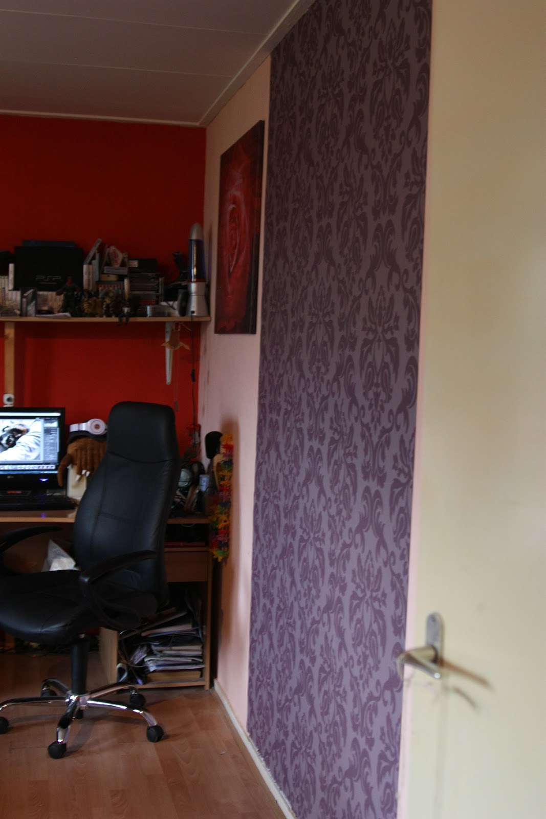 Vmesni rezultat (plasticne tapete so sicer kul, ker se vse lepo dol umije, ampak so groza za nalepit na steno)
