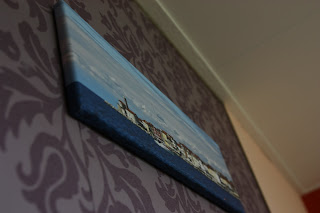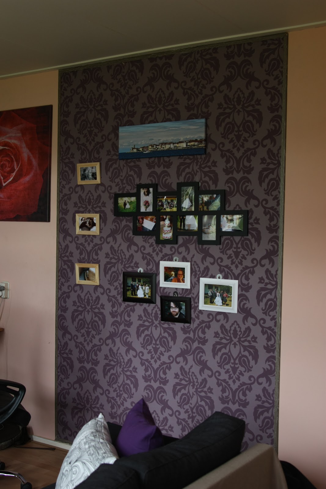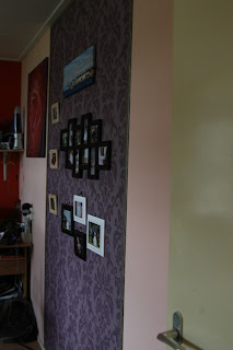 Okej, vzorca nisva najlepse zadela, ampak vse skupaj se mi zdi, da je dokaj lepo izpadlo. (Sploh, ker sva prvic lepila tapete! Prva prava zakonska preizkusnja in to.. )