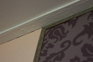 Tem tapetam je bilo potrebno dodati okvir (ali 'Zakaj Nadja vedno komplicira stvari?'). Tako sem se sama odpravila v trgovino (Bauhaus/Baumax/Obi, tukaj se ji rece Gamma) in kupila letvice in zagico... in sem zagala, lepla, merila. Vse bolj ali manj uspesno.