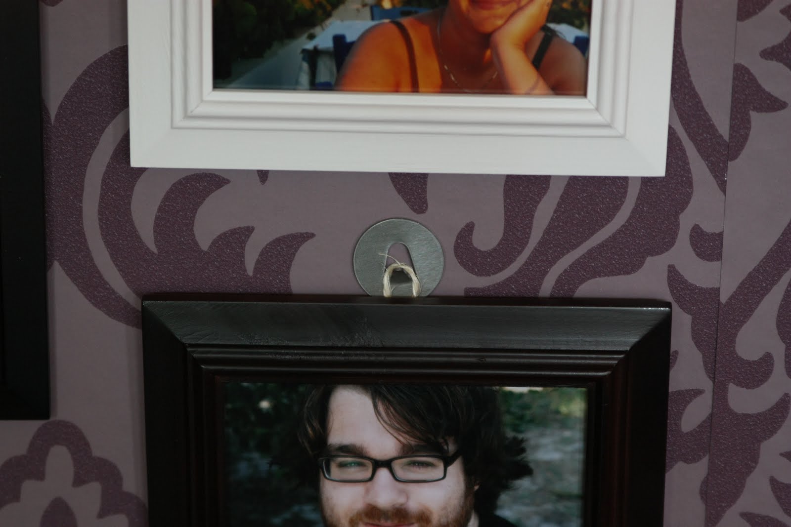 Slike sem na steno obesila s pomocjo kljukic, katere bi se naj uporabljalo v kopalnici. (pa se vrvica v tem primeru, ker je bil okvir namenjen temu, da se ga postavi na policko).